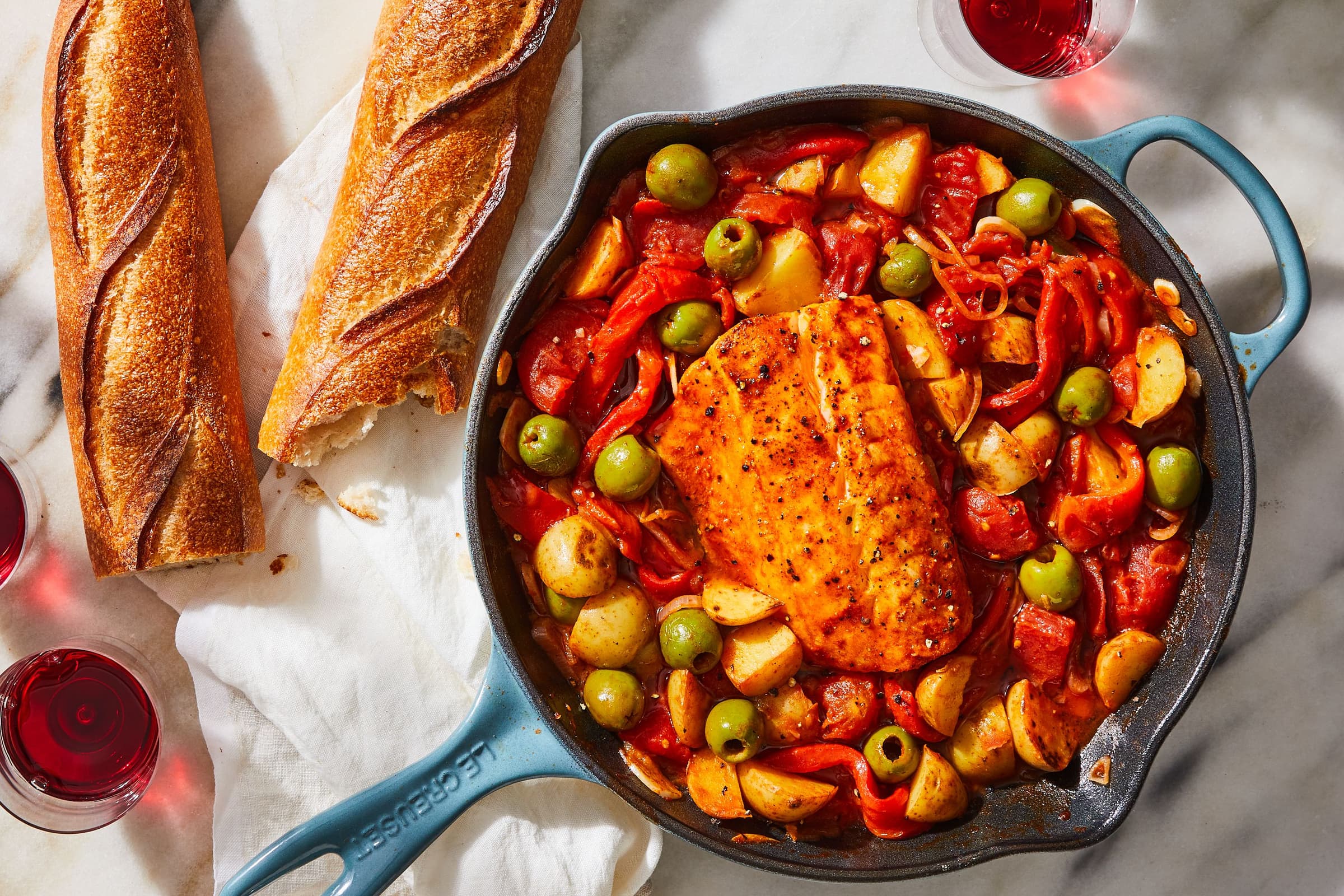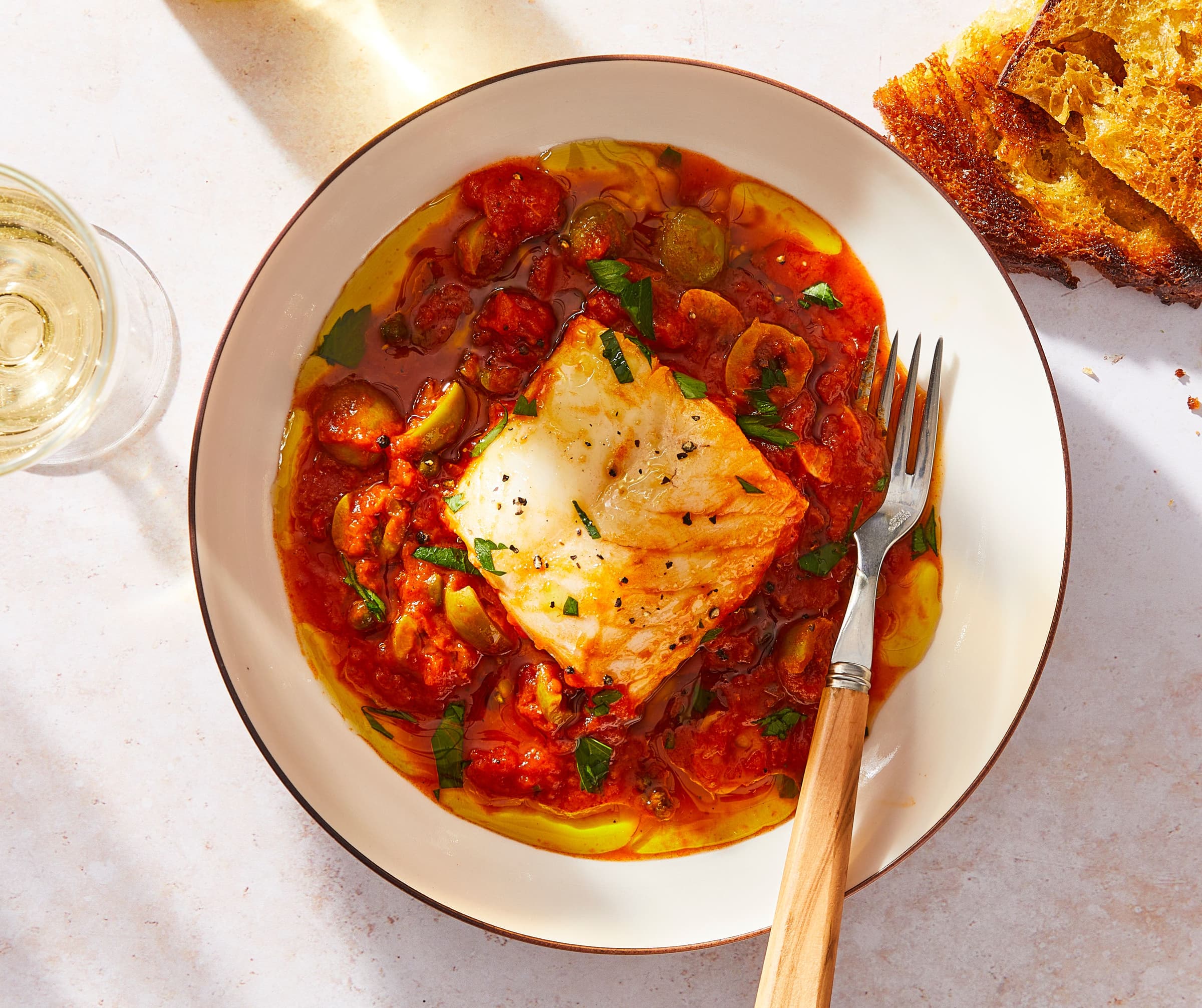 Cod has a neutral flavor so it’s well suited for many different types of dishes. Soupy preparations like these delicious chowders, curries, or poached fish showcase all the best qualities of cod without having to worry about the fish sticking to the skillet or falling apart when trying to flip it in the pan. Baking cod with tomatoes and feta, then tossing with pasta is quick, painless and super easy. Classic preparations include batter-dipped or breaded cod with tartar sauce or like these crispy nuggets with marinara sauce.